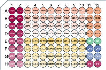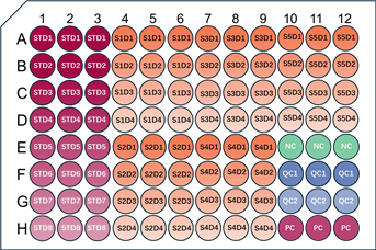 ? 在ELISA實(shí)驗(yàn)之前應(yīng)該合理規(guī)劃孔板布局:優(yōu)化的孔板布局能夠監(jiān)測關(guān)鍵性能指標(biāo),并在出現(xiàn)問題時更快地進(jìn)行問題排查。更多布板示例請點(diǎn)擊這里獲取。