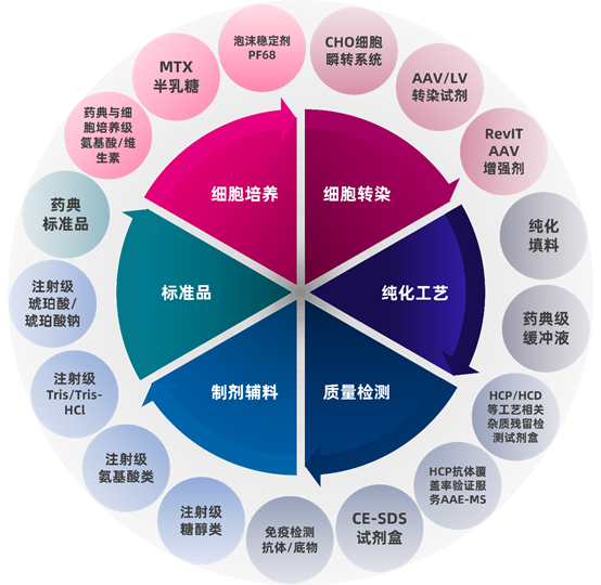 · HCP/HCD detection kits, bioprocess impurity residue detection kits (for Protein A/BSA/MVM, etc.), GMP-grade transfection reagents